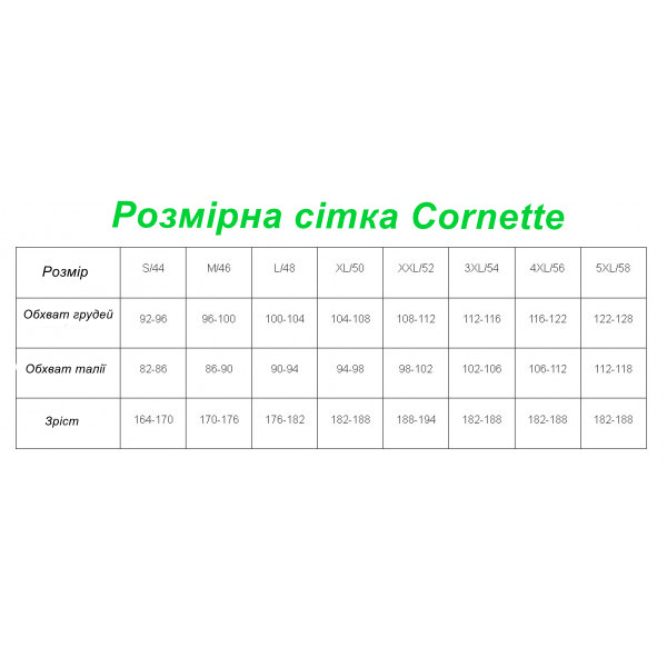 Розмірна сітка боксерок Cornette за об'ємом талії: